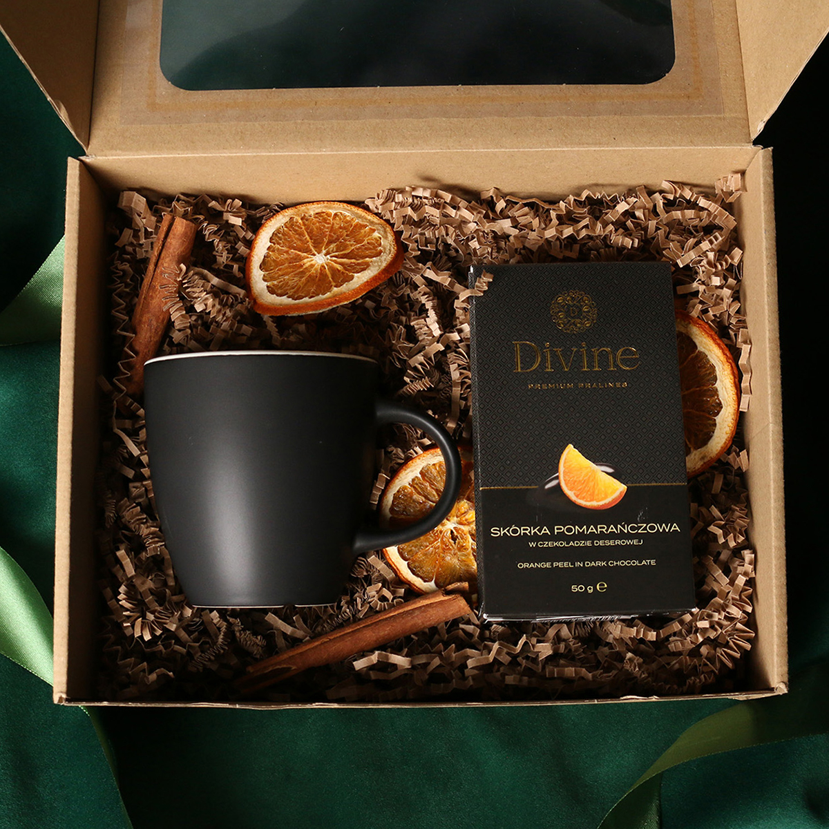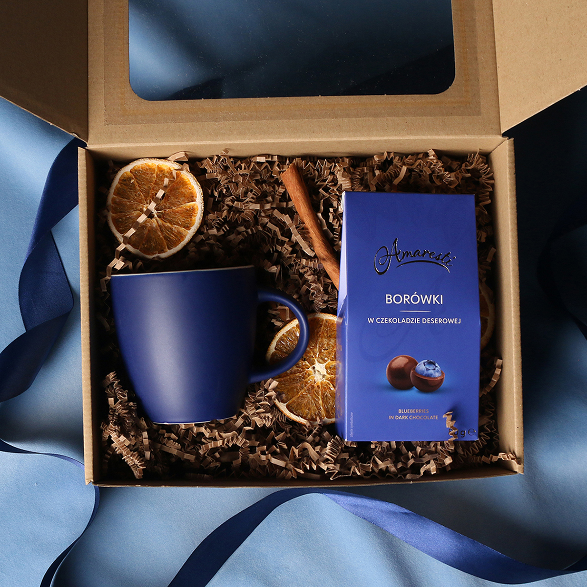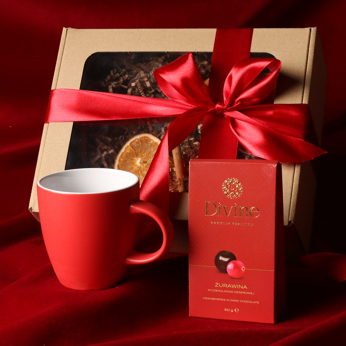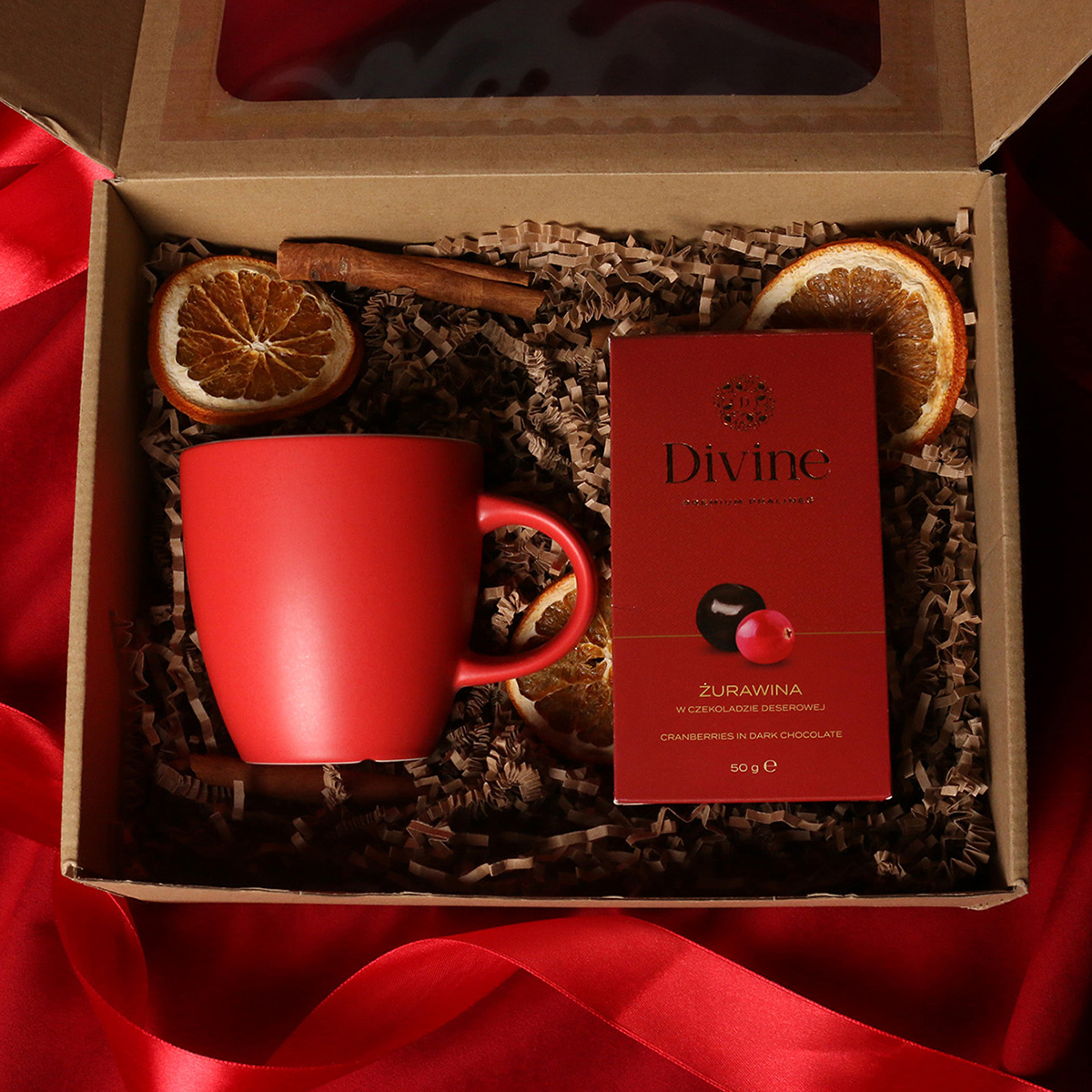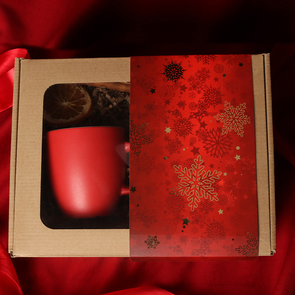 Kruus on pakitud koos maiusega kenasse kartongkarpi, mille ümber kinkepael või talvise trükiga ‘’sleeve’’ümbris.