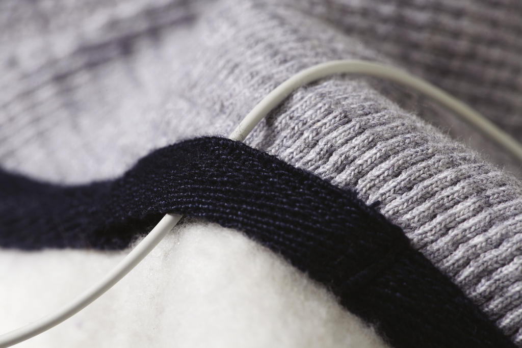 Contrast earphone loops in herringbone (matching neck tape colour)