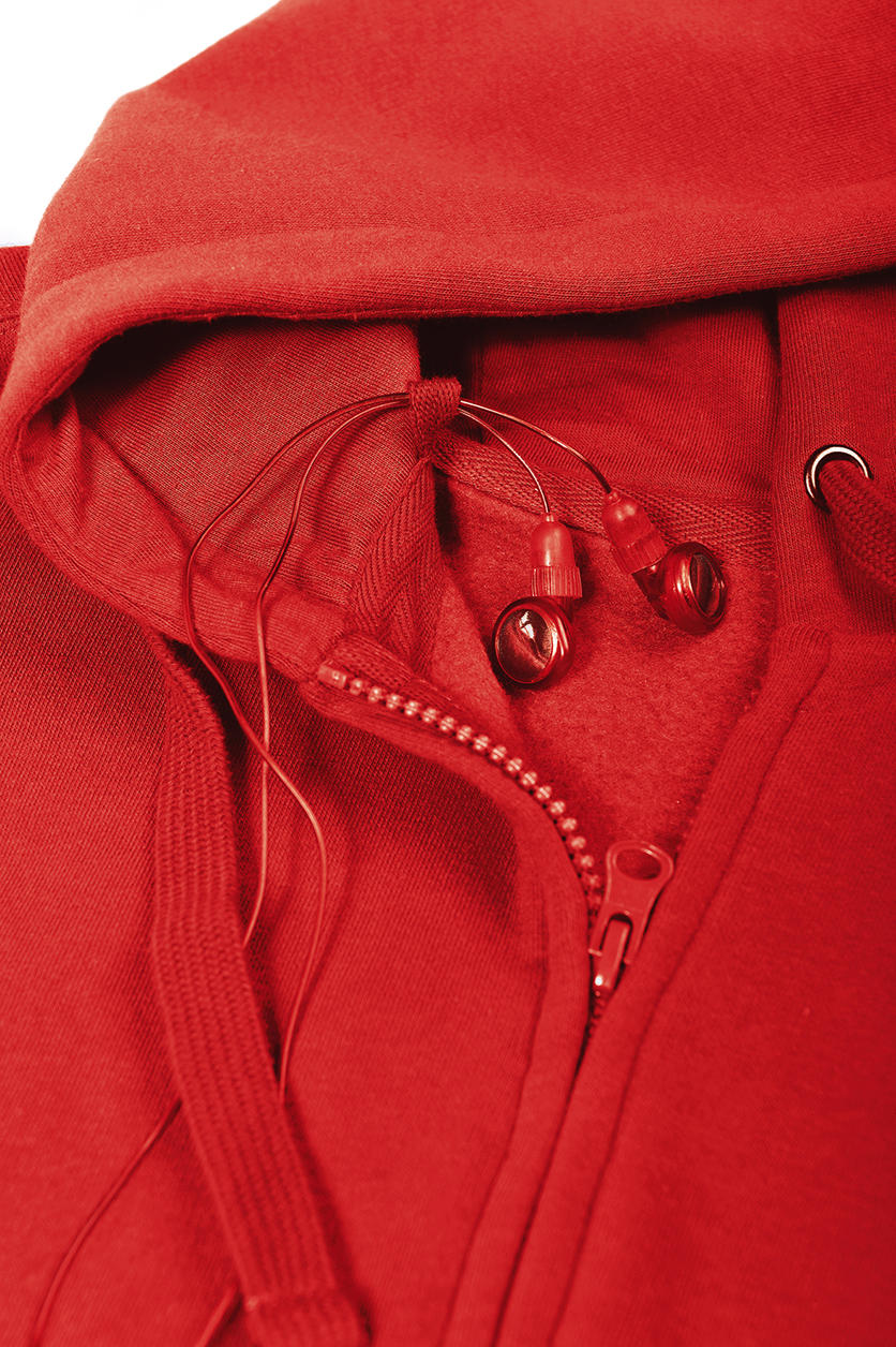 Patch pockets with opening for head phones on the right side