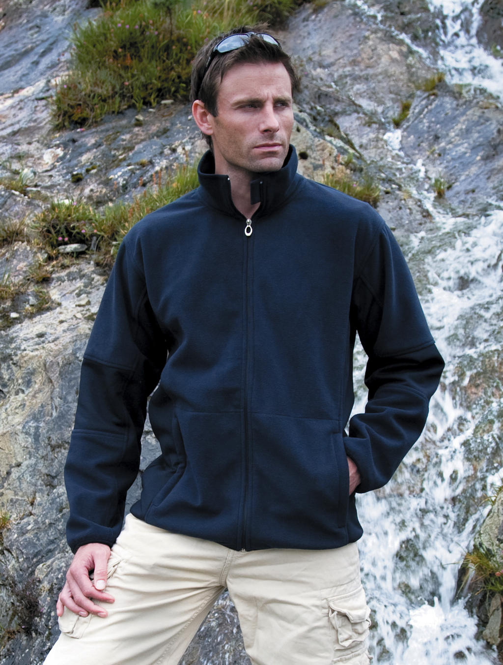 370 gsm; Väljast: 100% polüester, polüester/fliisi ja softshelli kombinatsioon (õlad, eest ja tagant: mikrofliis; küljed ja varrukad sees: softshell)