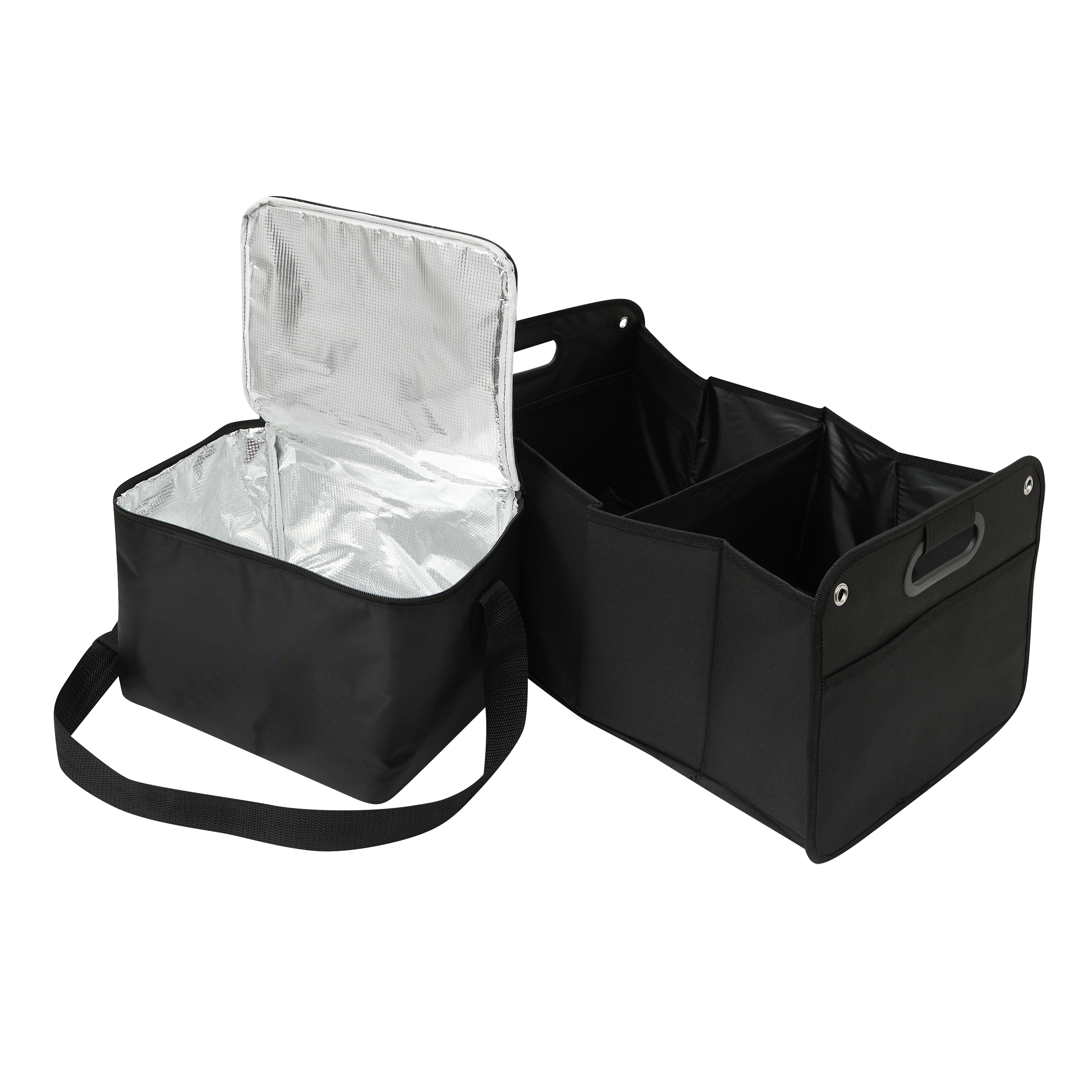 Pagasiruumi kotikomplekt ISO-GADGET: Eemaldatav jahutuskott reguleeritava õlarihma ja lukuga kaanega, millel tasku. Suur kokkupandav kott 2 lahtri ja põrandamattidega, mis võimaldavad palju hoiuruumi, samuti 1 võrktasku, 2 integreeritud kandesanga, takjapaelaga allosas, et pagasiruumis paremini hoida ja 4 metallist aaskinnitamiseks – saab kokku voltida ja kinnitada elastse vööga, et säästa ruumi, kui seda ei kasutata– mõlemat kotti saab kasutada eraldi, külmakott sobib ideaalselt põhikoti kummassegi lahtrisse