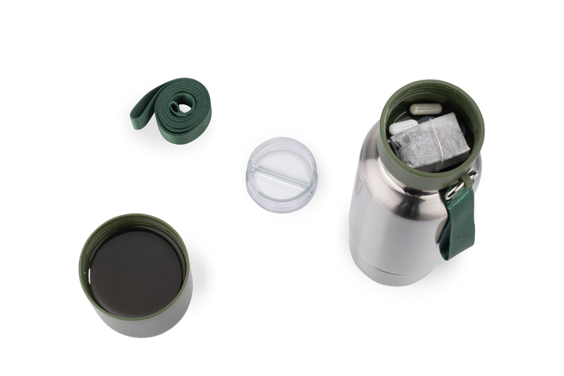 RON termopudel on suurepärane valik aktiivsele inimesele, kes hindab nii mugavust kui ka funktsionaalsust. See sobib ideaalselt treeninguteks ja spontaanseteks väljasõitudeks. Pudel on varustatud karabiini ja kahe paelaga: vaheldumisi lühike ja pikk pael, mis võimaldab mugavat kaasaskandmist ja hõlpsat kohanemist erinevate olukordadega. Kandke seda jooksmisel lihtsalt randmel või matkamisel kaelas. Lisaks on RON-pudelil sulgur koos praktilise panipaigaga väikeste esemete (nagu tabletid või toidulisandid) hoidmiseks. Unikaalne plastikust alus, millest saab lahtikeeramisel lisatops, välistab keele põletamise ohu ja võimaldab mugavamalt juua.