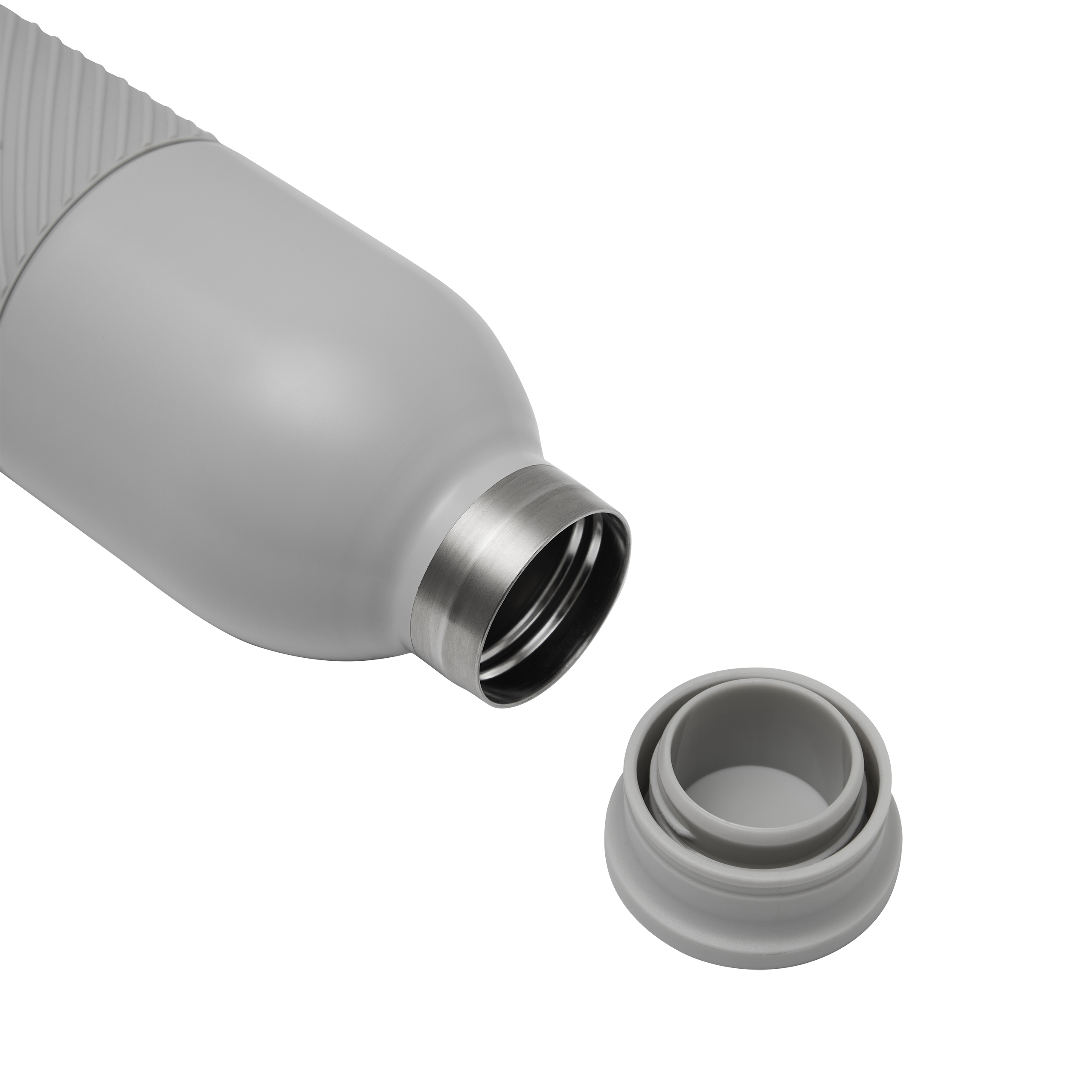 Vaakumisolatsiooniga pudel VACUGRIP, topeltseinaga: seest ja väljast roostevabast terasest, värvitooniga plastikust kaas kindla keeratava korgiga ja silikoonümbris parimaksks haardumiseks, mahutavus ca. 600 ml, säilitab sooja u. 8 tundi ja külma kuni 12 tundi.
