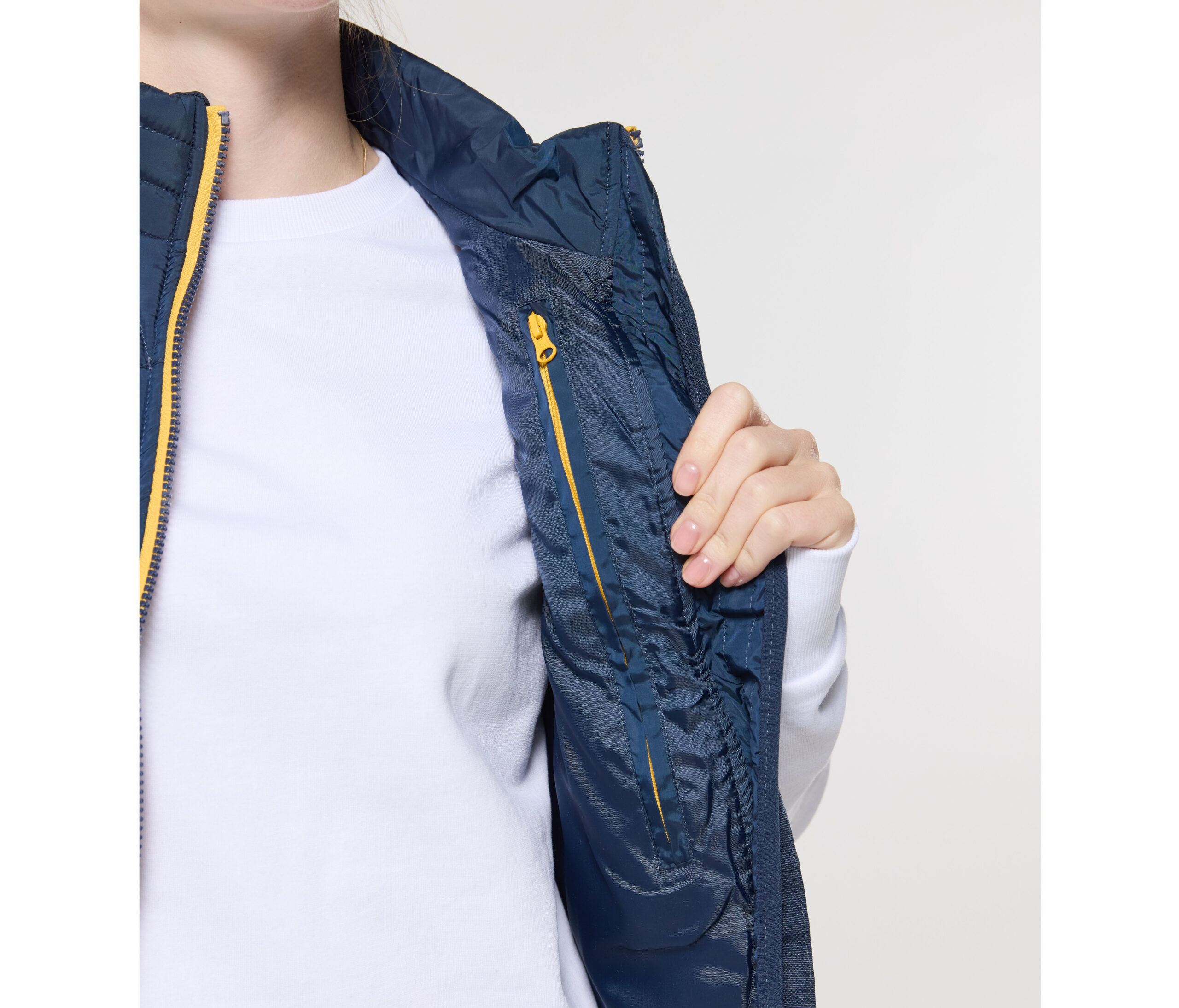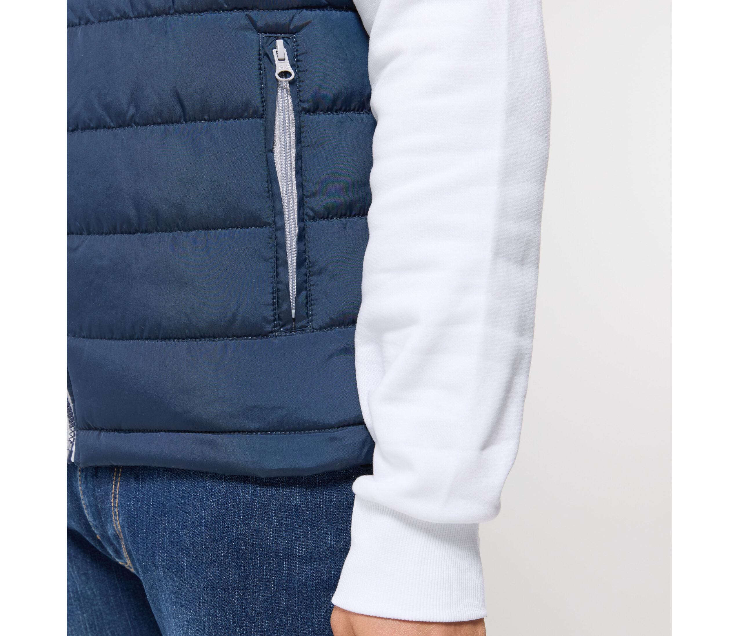 Trendikas vest. Vetthülgav ja tuulekindel. Ees täispikk lukk ja vasakul sisetasku brändingu jaoks. Vesti saab täielikult kokku pakkida ja hoiustada paremas sisetaskus, millel on takjakinnitus. Pingutusnöör vöökohal. Käeaugud ääristatud. 2 külgmist klappidega lukuga taskut. Õmbluste vahekaugus 6,5 cm.