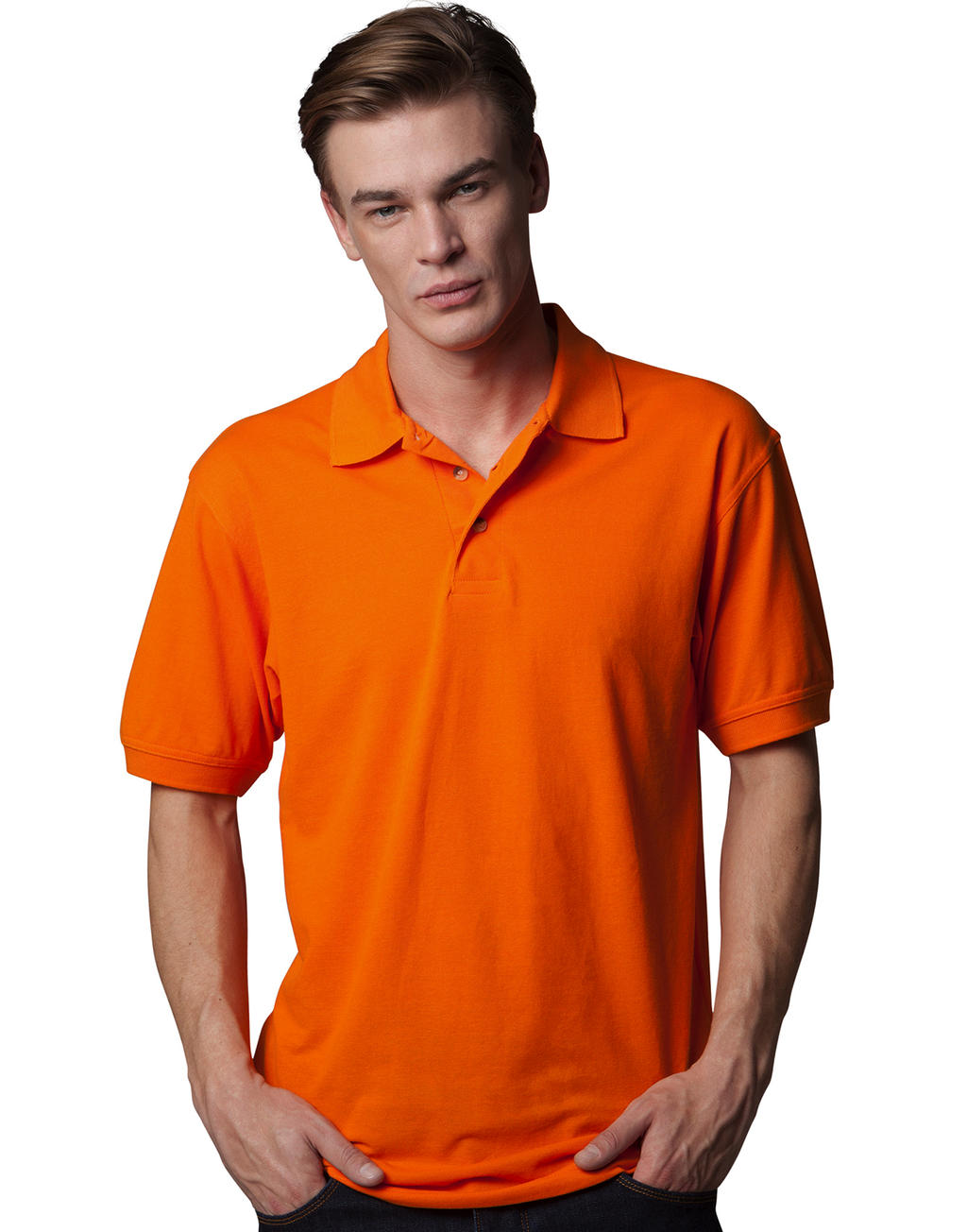 65% polyester, 35% cotton piqué